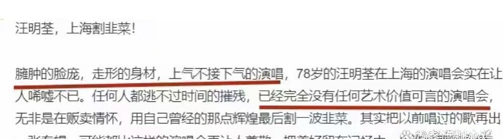 上海那边有场演出,三月到五月一直有人议论。汪明荃要开唱,她七十八了。消息一出来,网上就炸了。有人说她走路得有人扶。有人说她这岁数还出来,票价定得挺高。反正各种难听话都有。后来演出办完了。现场有人拍了东西放出来。看了那些,之前吵吵的那些话就没人提了。两个来月的时间,说法完全掉了个个。老演员就是离不开台上那点事。她站在那儿,把歌唱完了。